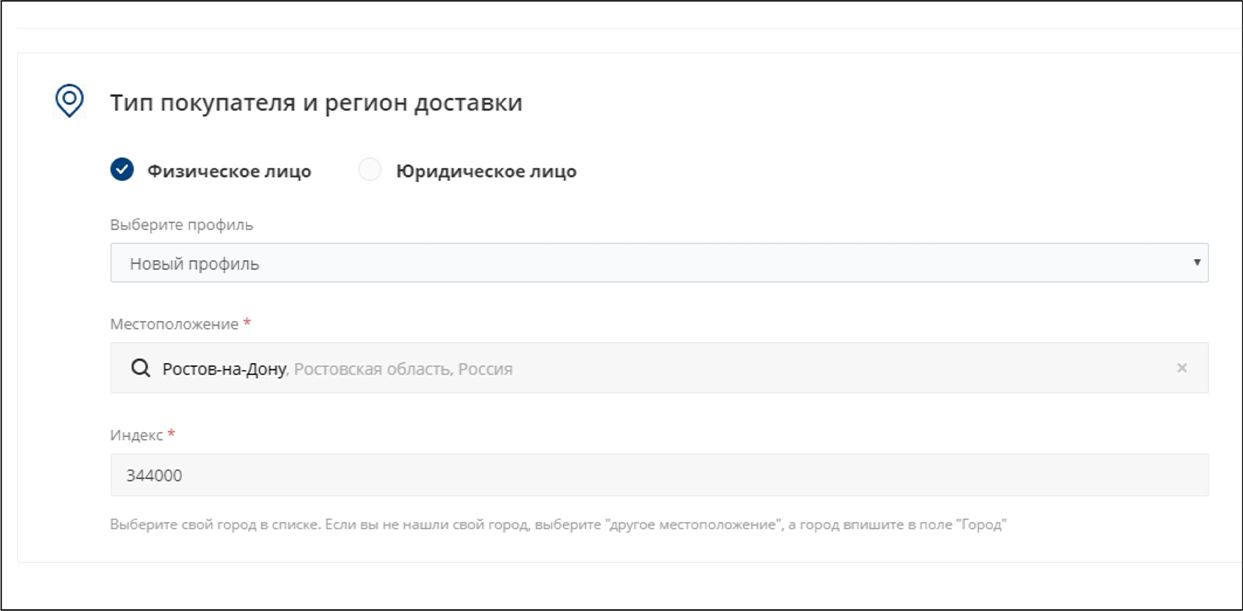 «Тип покупателя и регион доставки»